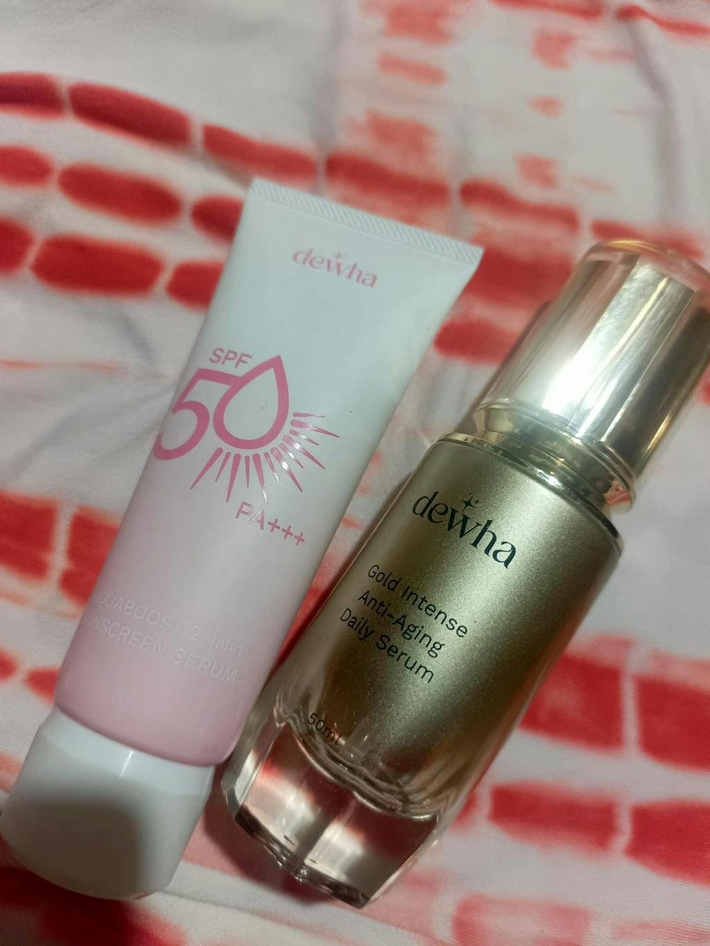Yes, you may use Dewha together with your regular skincare products.