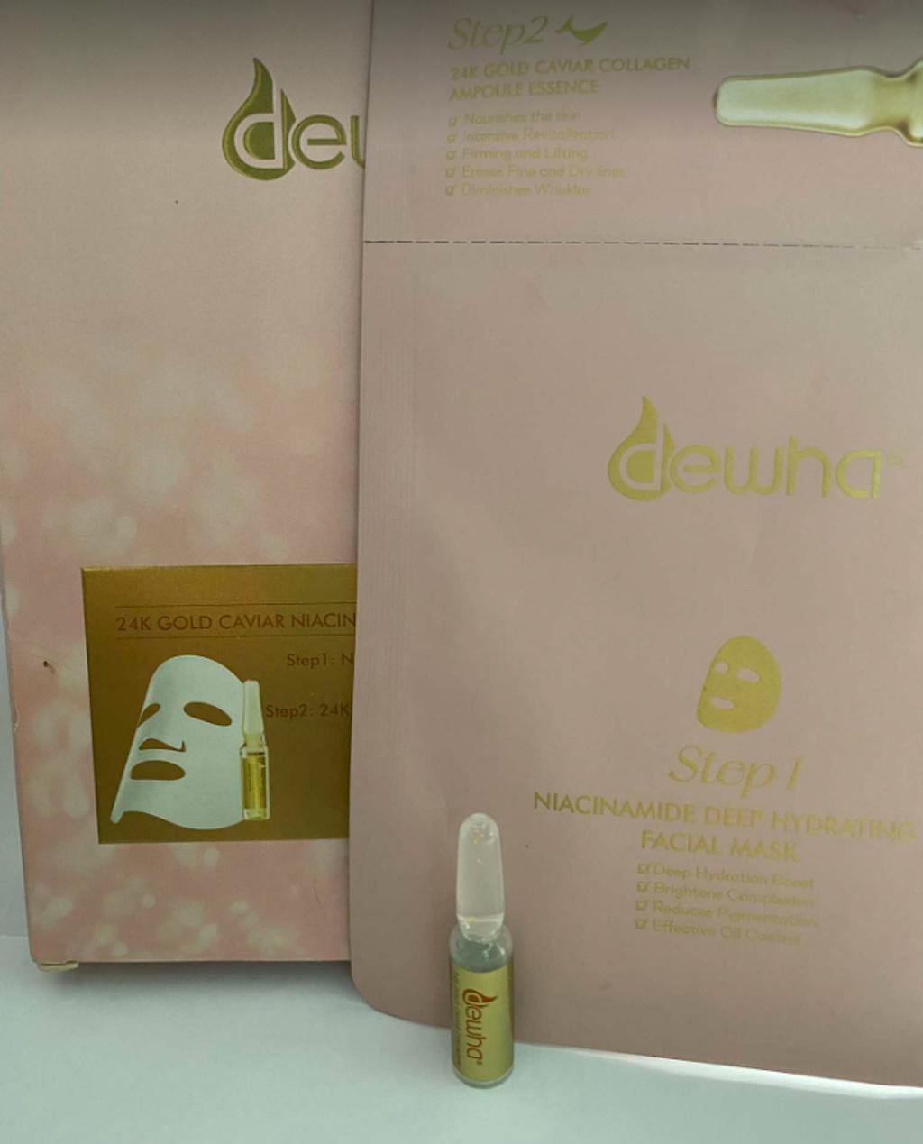 - Dewha 24K Gold Caviar Niacinamide 2-step Ampoule Mask Kit: